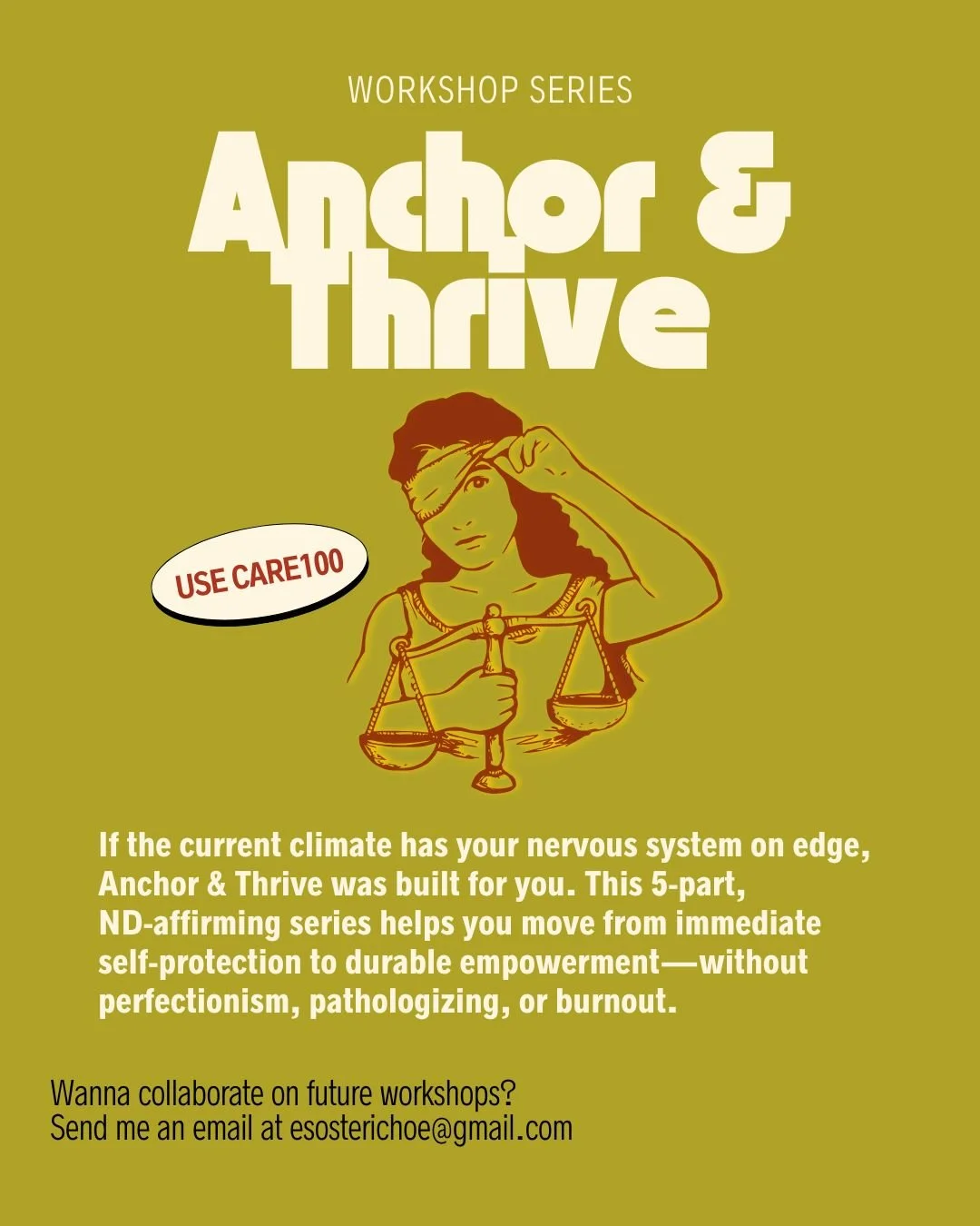 Anchor & Thrive is a 5‑part resilience series for queer and neurodivergent folks who want practical care, community, and agency in a hostile climate. We move from “what‑to‑do‑right‑now” grounding to long‑term joy and sustainable action.